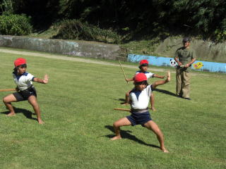 子岳地区に伝わる郷土芸能「手踊り」を教えていただきました。三人とも真剣な態度でのぞんでいました。