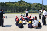 | 交通教室がありました。川内警察署交通課のお巡りさんに指導していただきました。横断歩道の渡り方や自転車 の乗り方をみんなで練習しました。 |